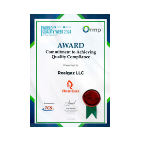 RealGaz, teknik gazlar sektöründe Azerbaycan’da ISO 9001:2000 sertifikasını alan ilk şirket olmuştur. Bu sertifika, 7 Aralık 2005’te OHSAS 18001:2007 sertifikası ile birlikte verilmiştir. Mükemmeliyete olan bu öncü bağlılık, bizi bölgenin kalite lideri olarak tanıtmıştır.
